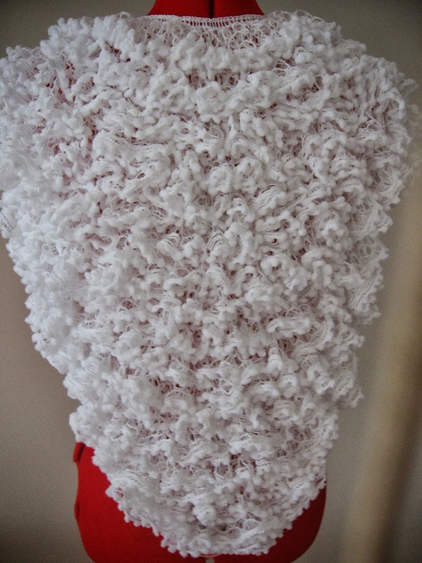 This (Below) is the front of the shawl. I used the cord to hold the stitches